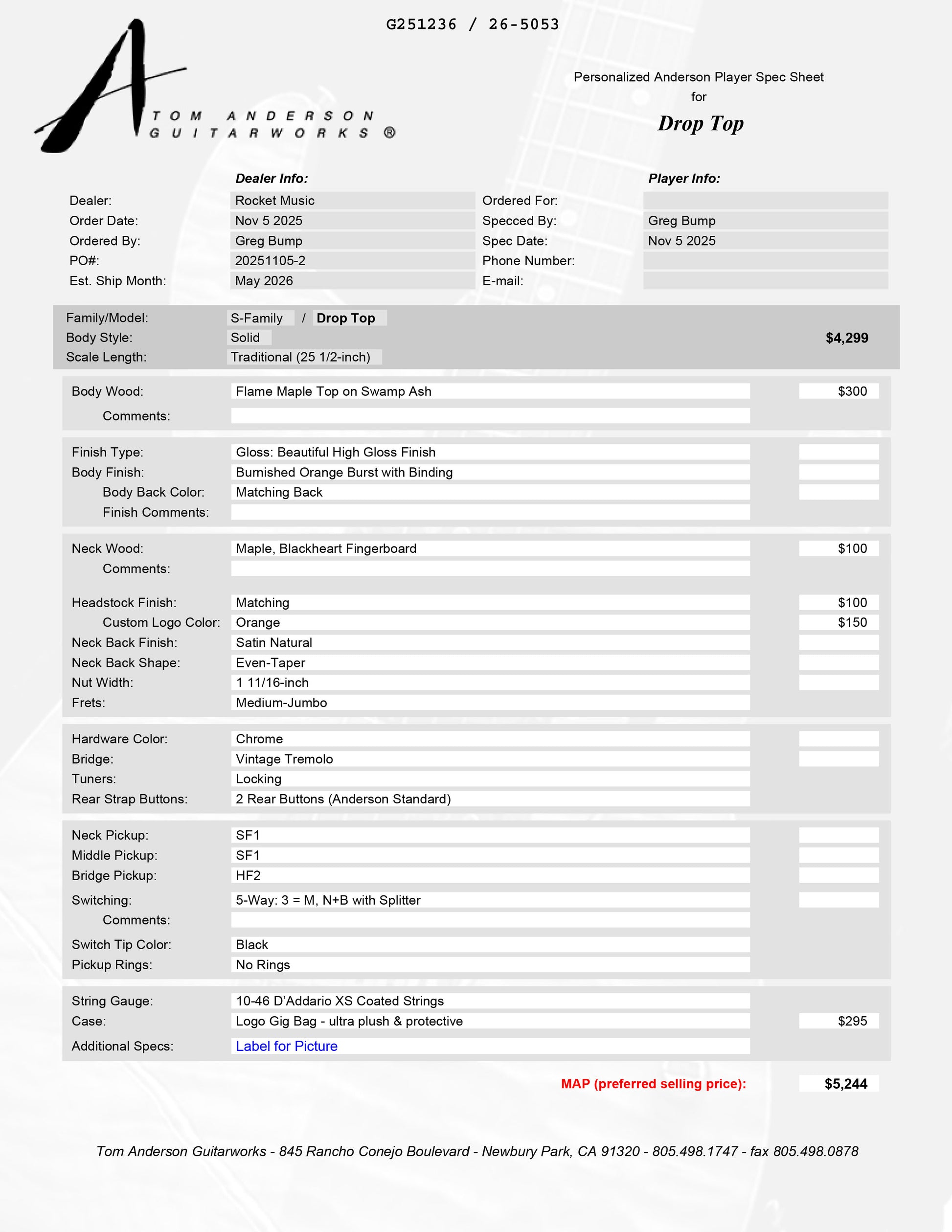 This guitar is currently on order, and we expect it to arrive late mid-summer 2026.