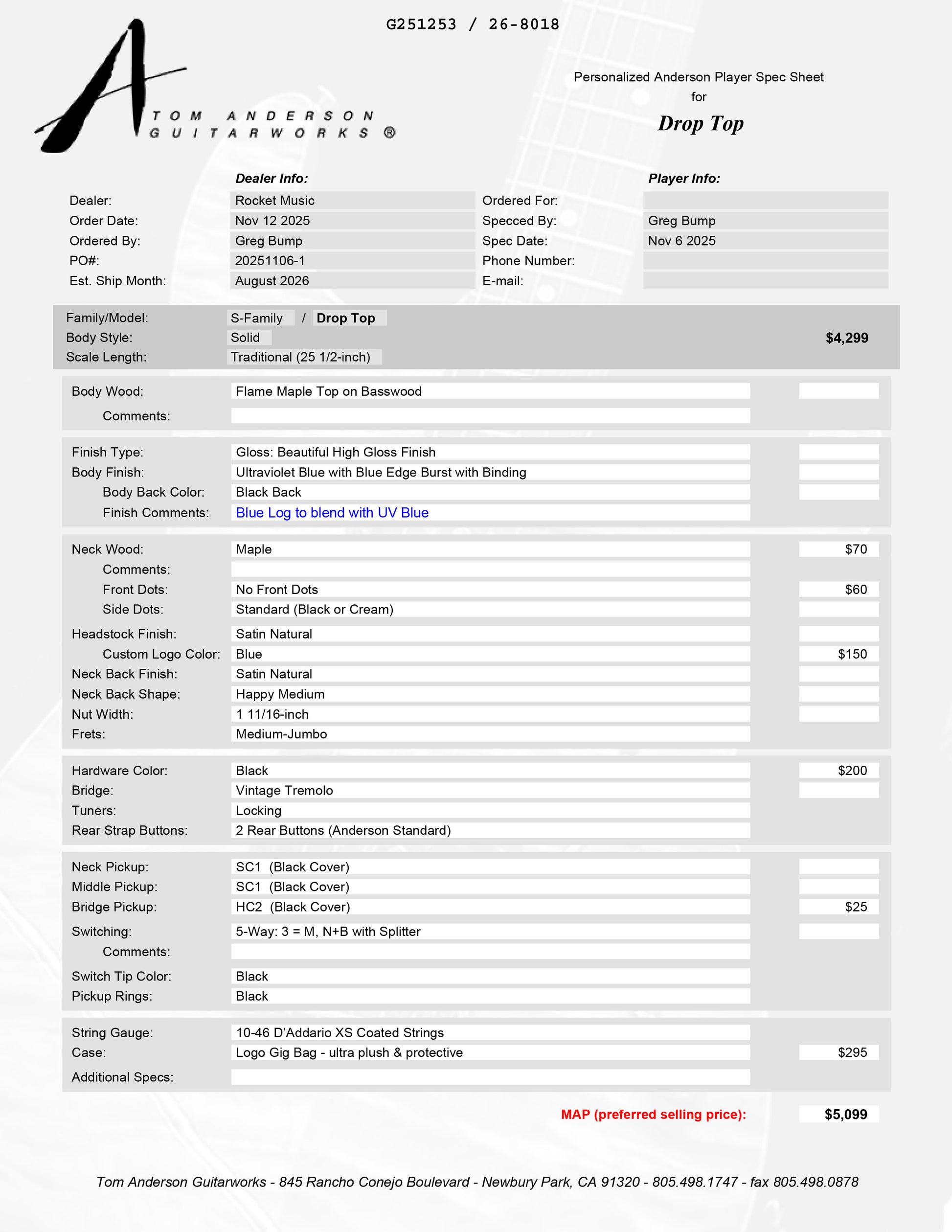 This guitar is currently on order, and we expect it to arrive late summer or early fall 2026.