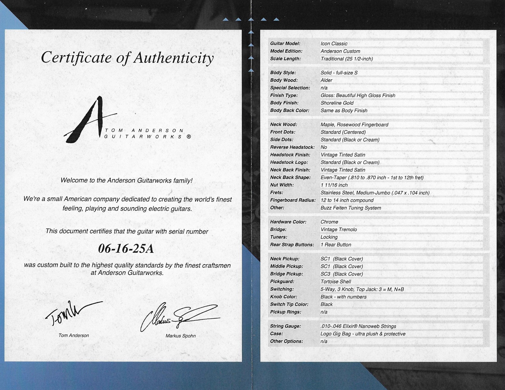 The Anderson Icon Classic is a guitar that means business—sleek, sophisticated, and ready to turn heads. Crafted with an Alder body in Shoreline Gold, this beauty delivers the tonal warmth and sustain serious players crave. Whether you're laying down some blues, crafting indie anthems, or exploring your sonic palette, the Icon Classic delivers that perfect blend of vintage vibes and modern playability. It's the kind of instrument that makes you want to pick it up and never put it down. Make it yours today!