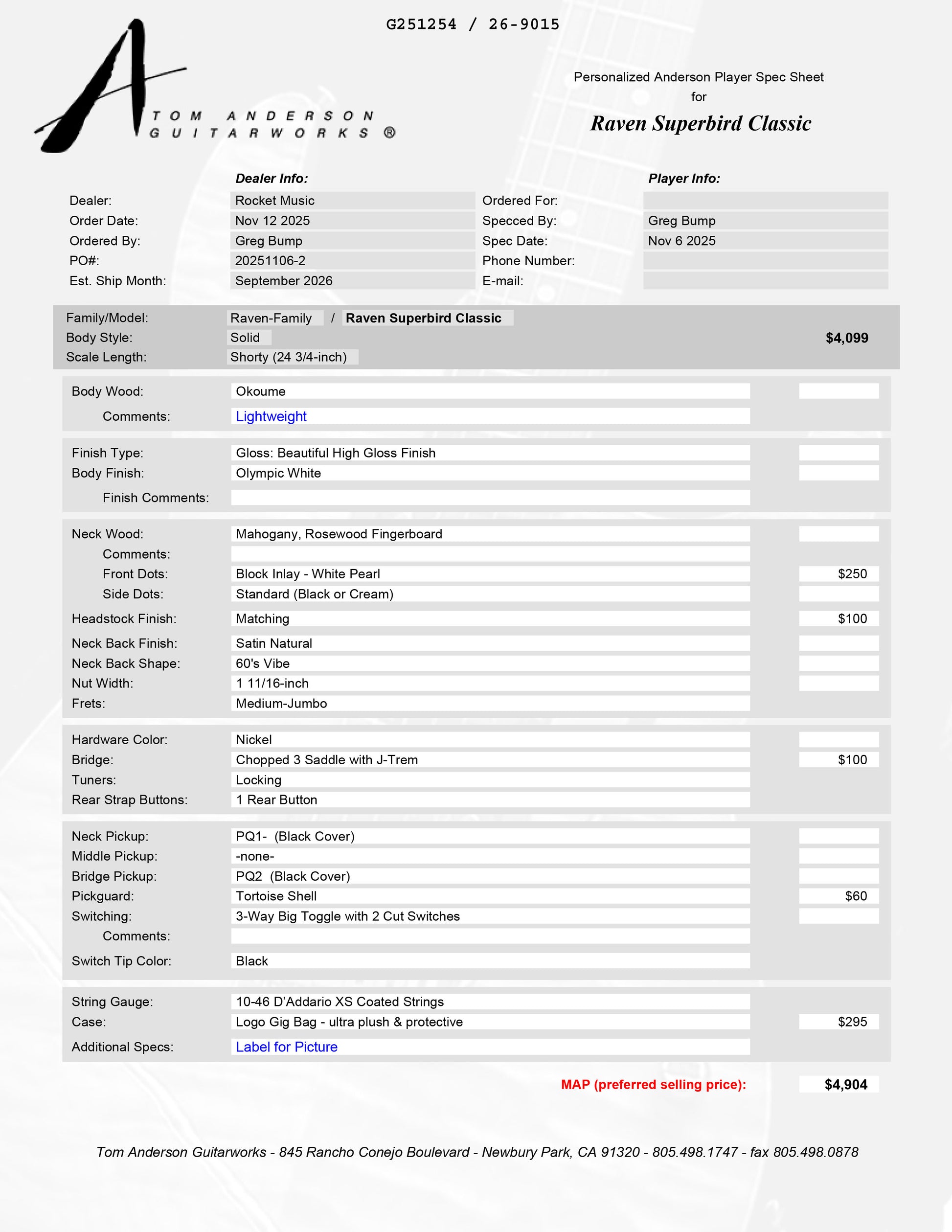 This guitar is currently on order, and we expect it to arrive early fall 2026.