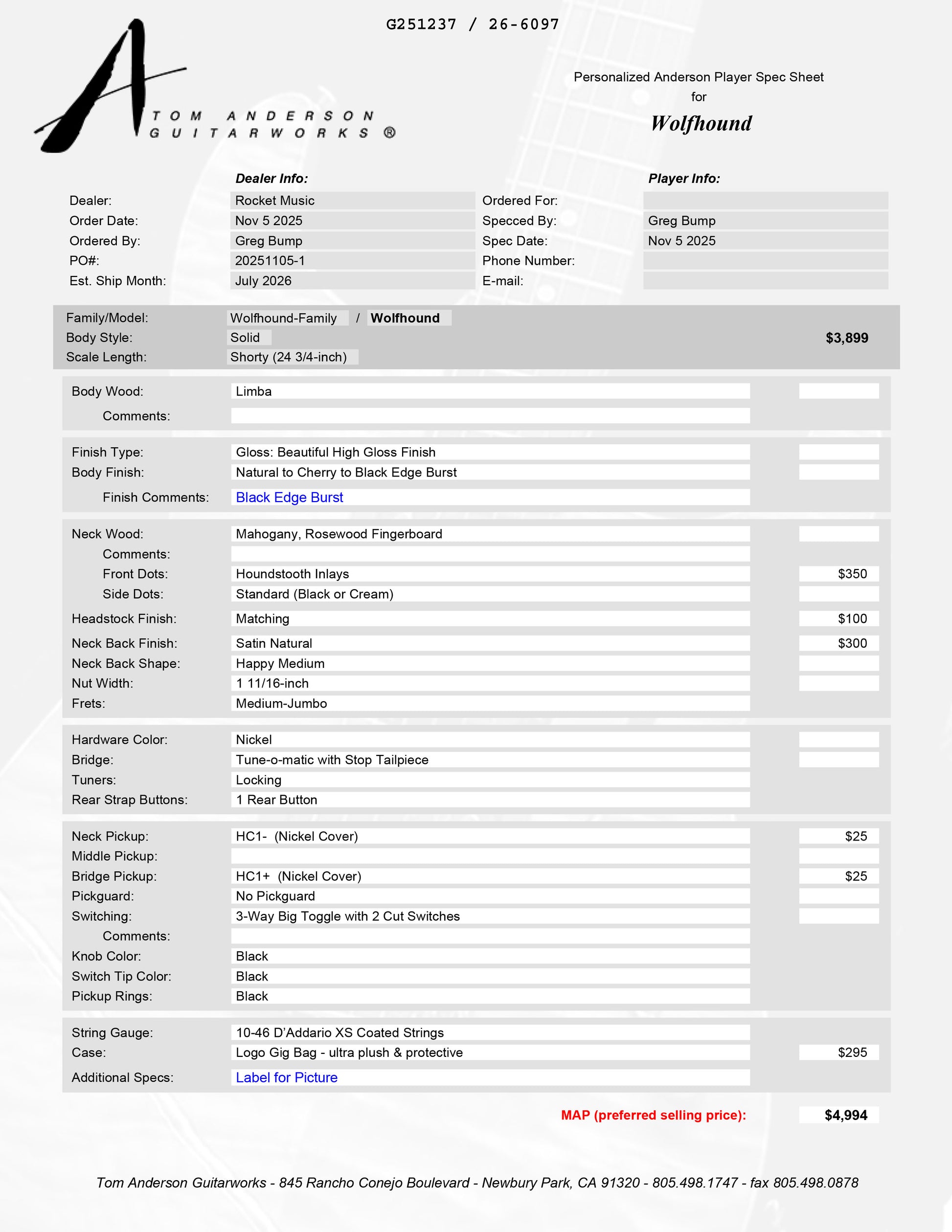 This guitar is currently on order, and we expect it to arrive late summer 2026.