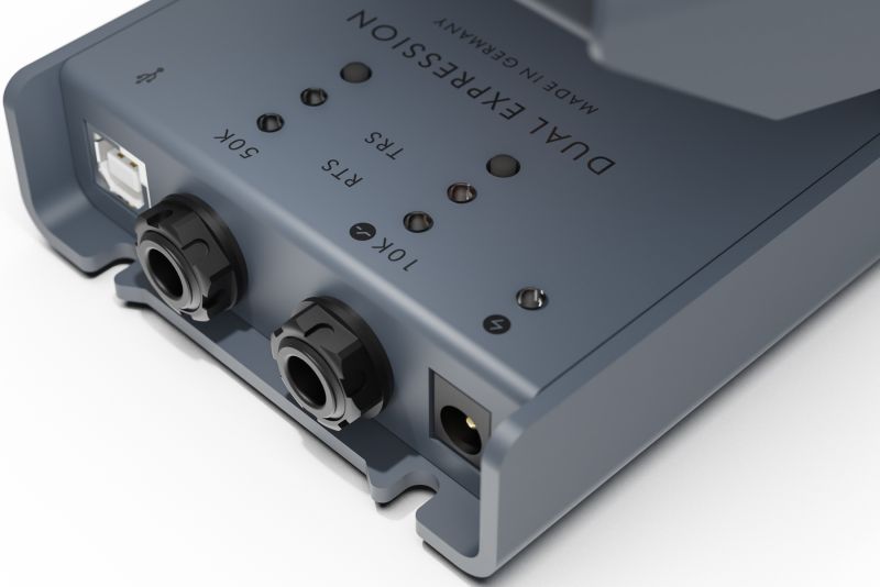 Via the USB socket you can calibrate, edit and update the LEHLE DUAL EXPRESSION via the free online editor LEHLE VERWALTER – and by the way it sends MIDI data to a computer, in order to control midi compatible software or any hardware device offering a USB host.